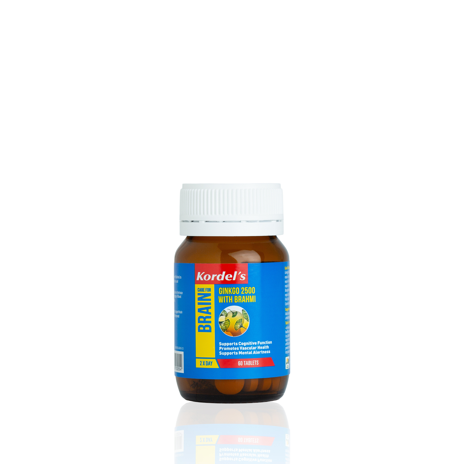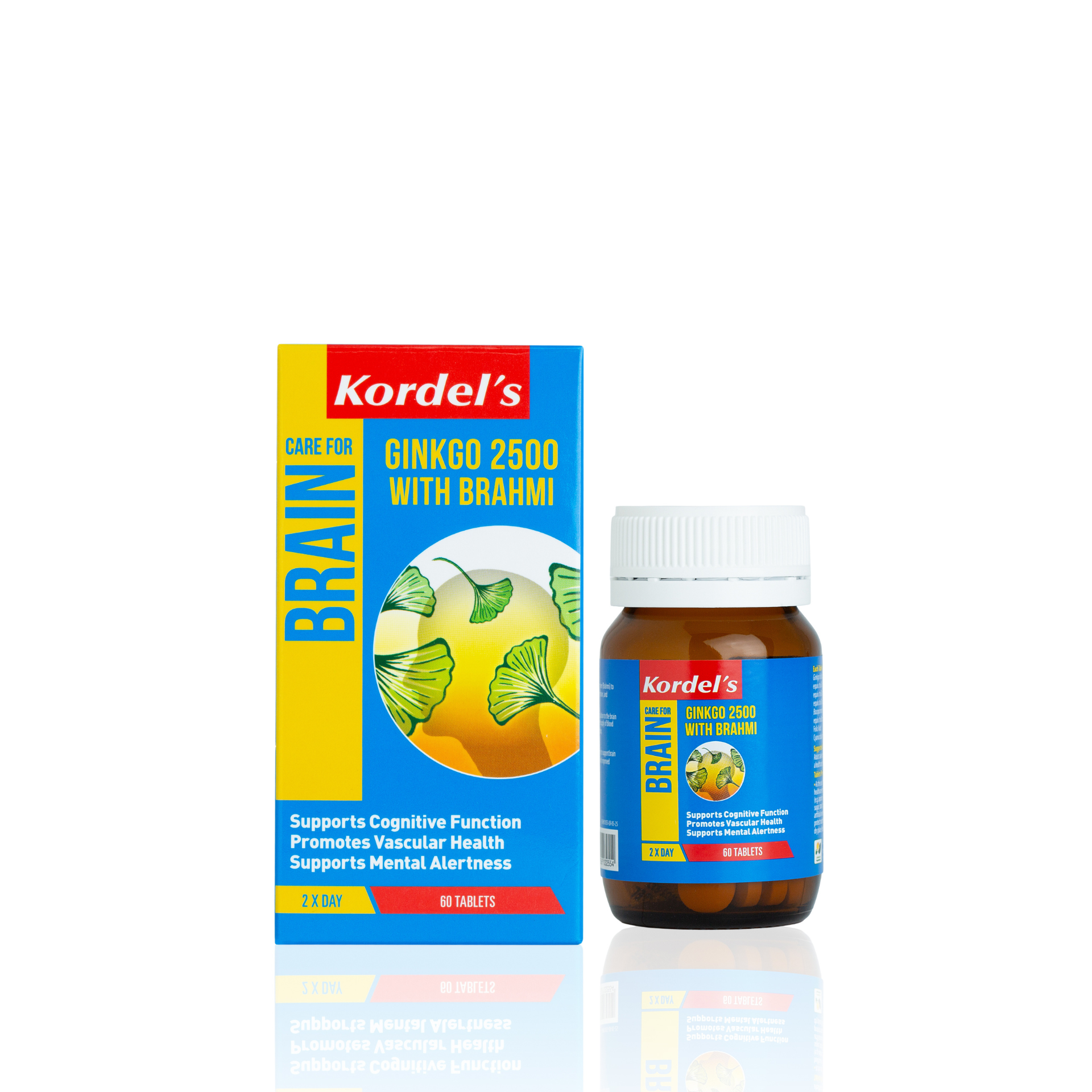 Kordel’s Ginkgo 2500 with Brahmi contains standardised amounts of Ginkgo Biloba and Bacopa Monnieri. This formula supports memory, concentration and calmness during stressful periods.
